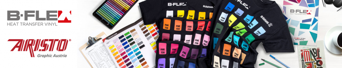 B-FLEX ist neben den beiden klassischen Produktlinien Gimme5 und 700A noch für die speziellen Mirror, Glam, Varnish und Glitter Folien bekannt. Das gesamte Sortiment zeichnet sich dadurch aus, dass für alle Anwendungen, egal ob Baumwolle, Polyester oder Mischgewebe, unterschiedliche Qualitäten zur Verfügung stehen. So gibt es transparente und opake Folien mit glatten, matten und glitzernden Oberflächen. Die Flexprodukte sind zertifiziert nach Klasse 1 des Oeko-Tex Standards 100.