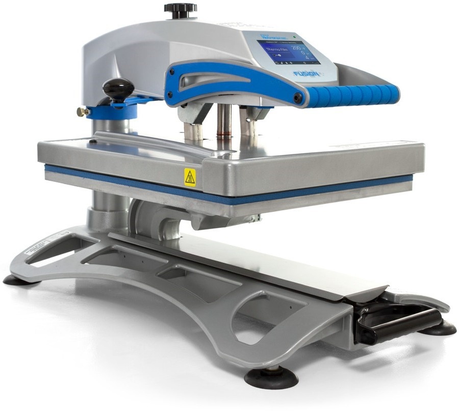 Schlichtes Design, Luftdruckbetrieb: Das ist die Hotronix® Air Fusion IQ™, die erste vollautomatische Transferpresse. Zwei Knöpfe und ein Pedal – mehr wird nicht benötigt.