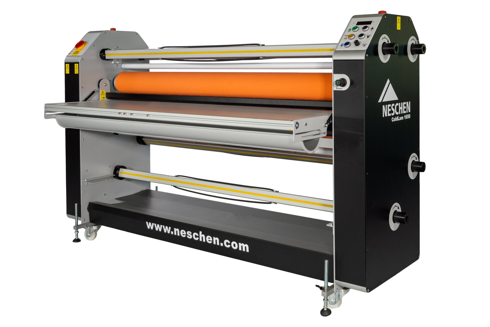 Die Laminatoren von Neschen, wie die bekannten Serien ColdLam und HotLam, wurden speziell für die intensiven Anforderungen der Werbetechnik und des Digitaldrucks konzipiert. Sie zeichnen sich durch eine besonders robuste Bauweise und eine intuitive, ergonomische Bedienung aus, die selbst bei hohen Produktionsgeschwindigkeiten perfekte, blasenfreie Ergebnisse garantiert. Dank der wartungsarmen Technik und der Verwendung hochwertiger Komponenten bieten diese Maschinen eine maximale Zuverlässigkeit für den täglichen Einsatz.
